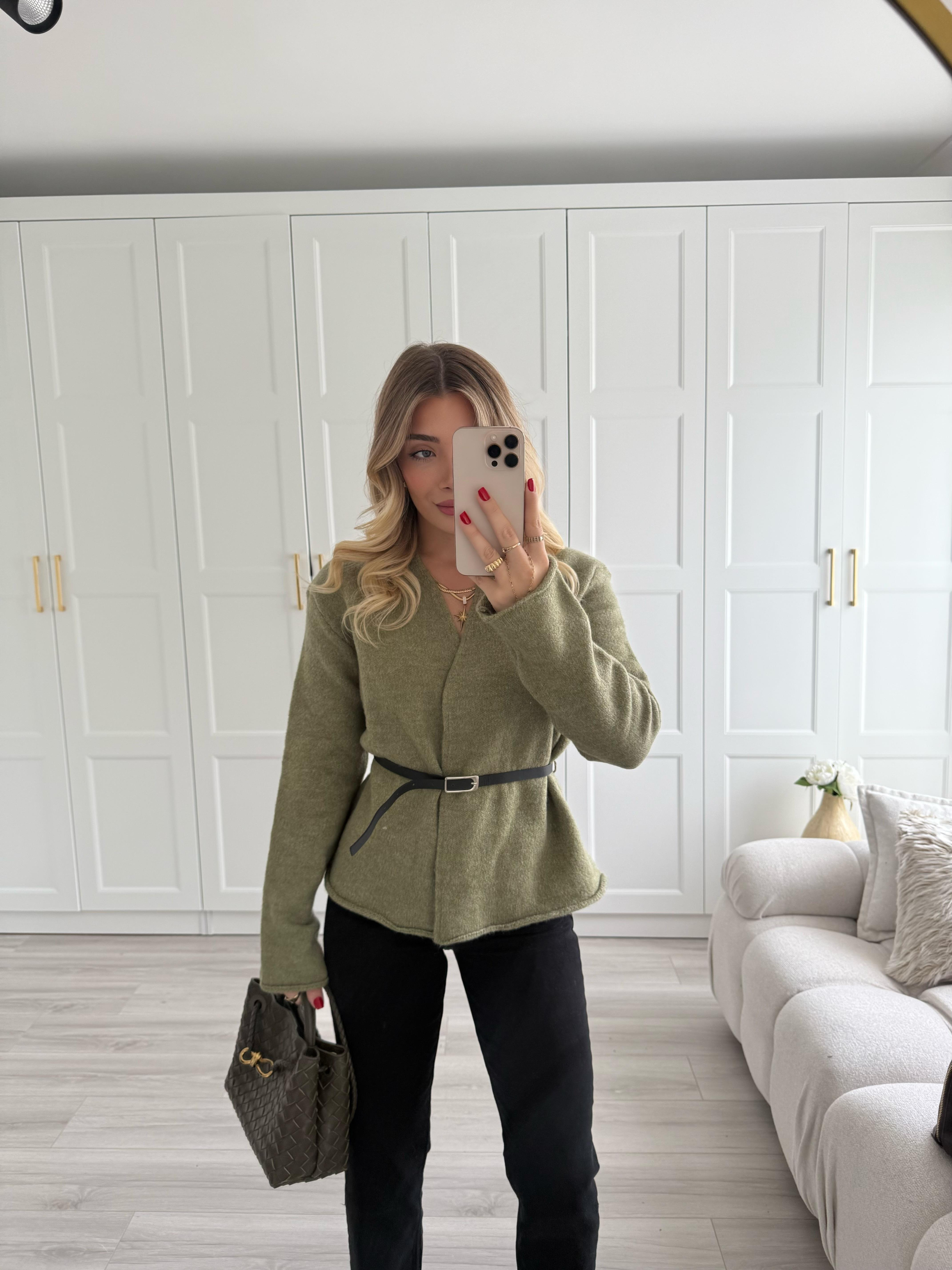 Açık Yeşil Kemerli Hırka -1084 (ck-8654)