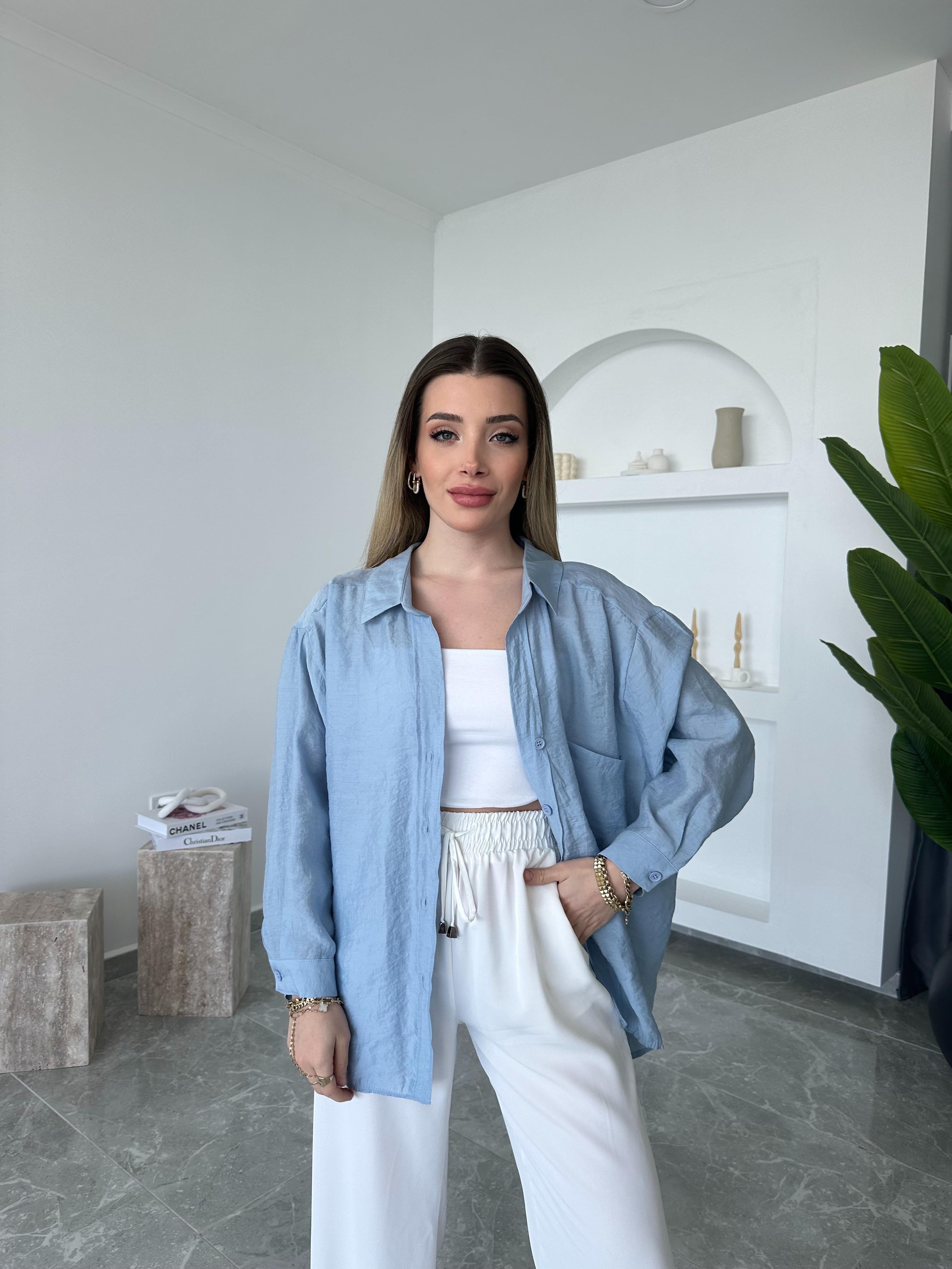 Bebe Mavi Oversize Tensel Gömlek
