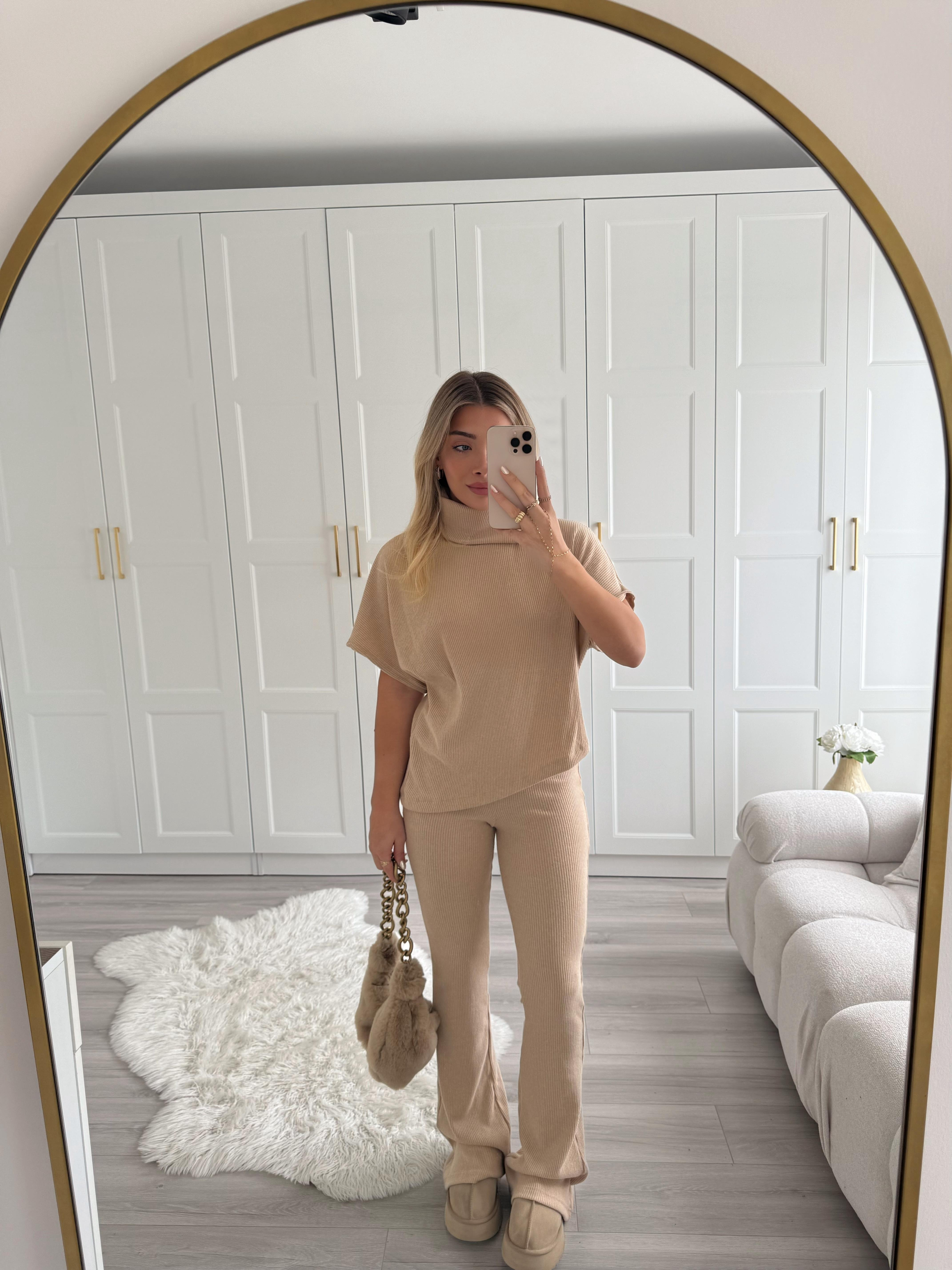 Bej Asimetrik Top- Örme Pantolon Takım 32239 (ck-8865)