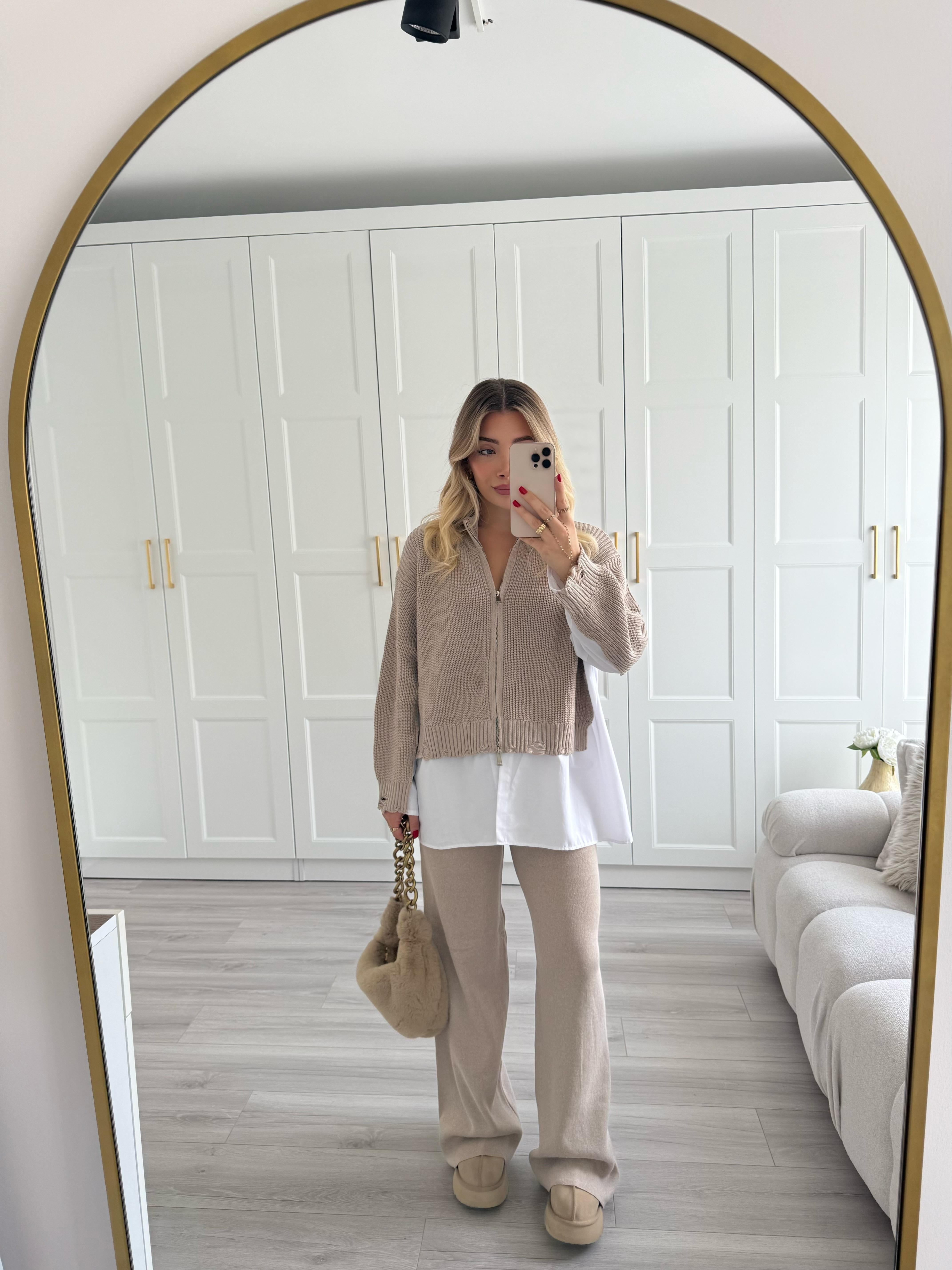 Bej Poplin Gömlek Detaylı Triko Takım (ck-9987)