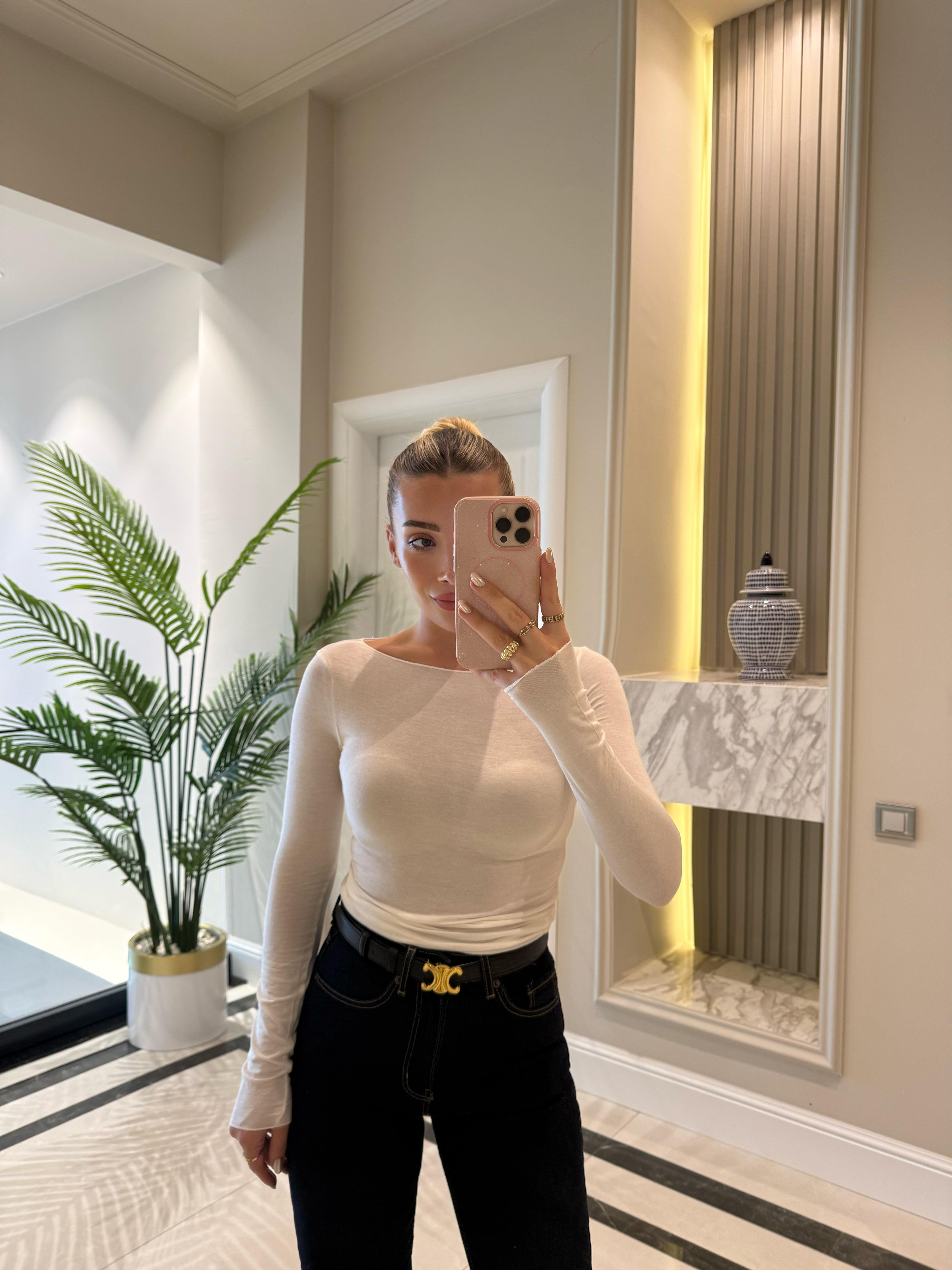 Beyaz Kayık Yaka Modal Kaşmir Ultra Hafif Bluz-32122