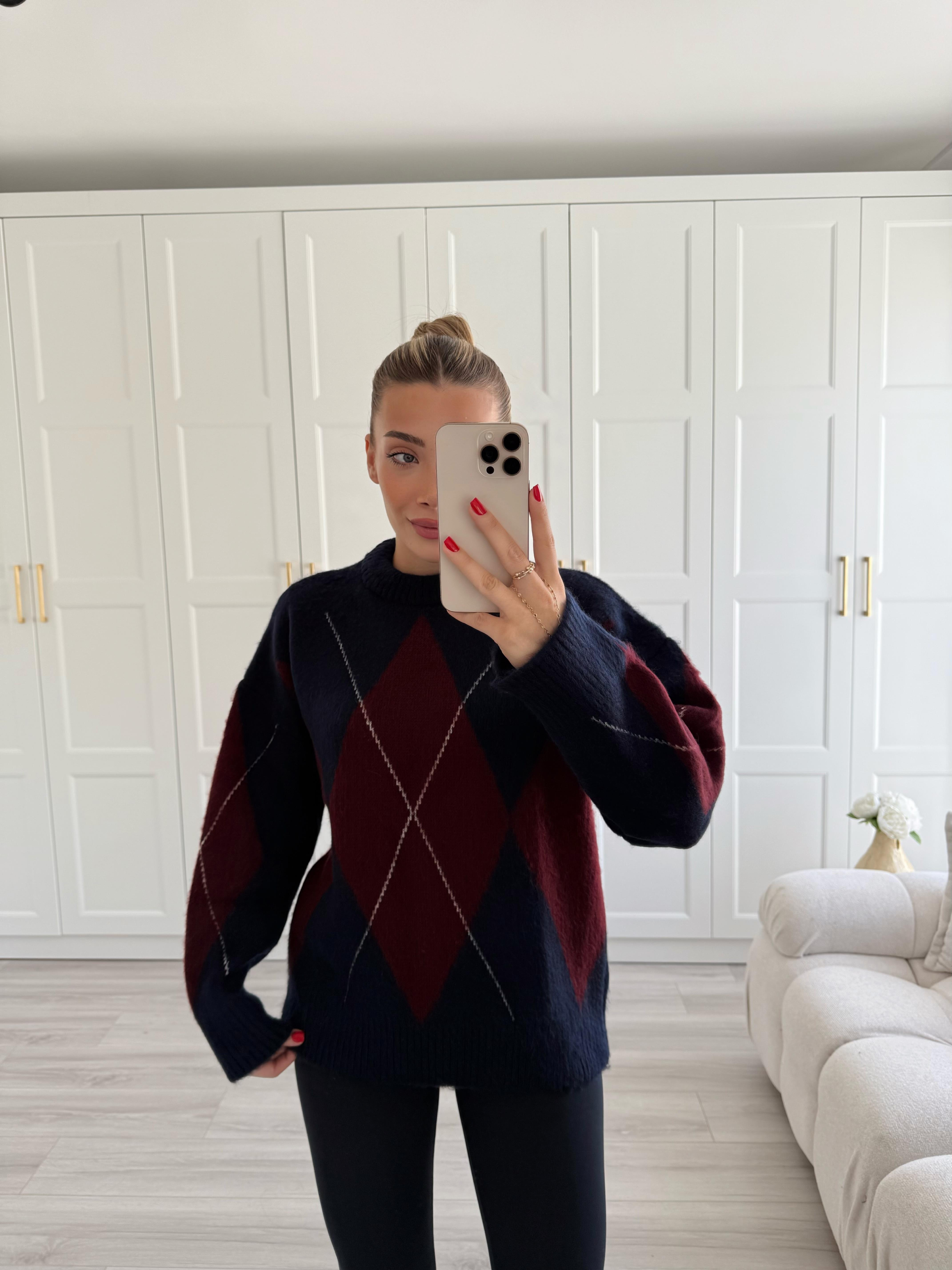 Bordo-Lacivert Geniş Baklavalı Kazak- 1261