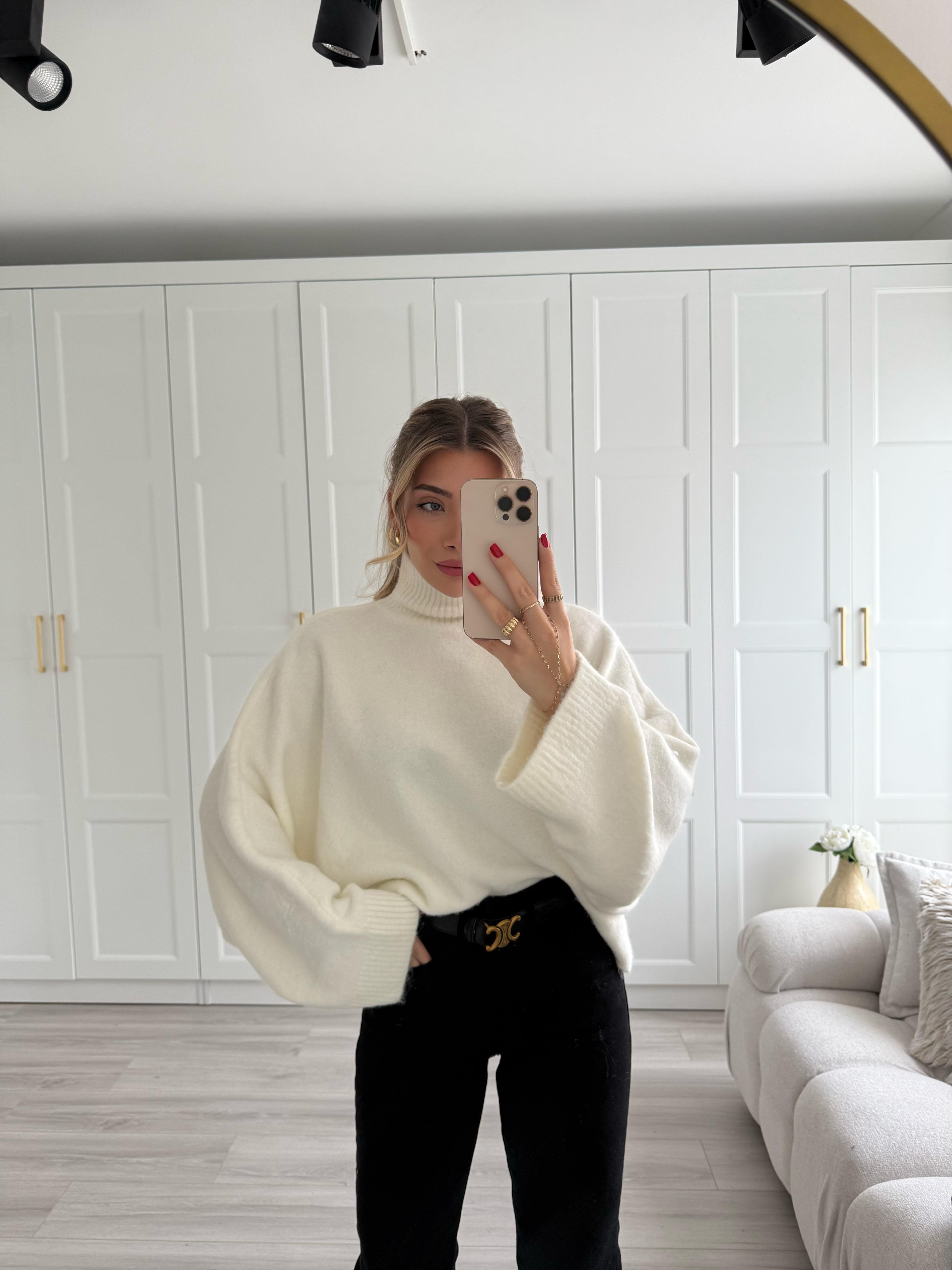 Ekru Yumuşak Dokulu Yarasa Kol Triko Kzak-10817 (CK-977)