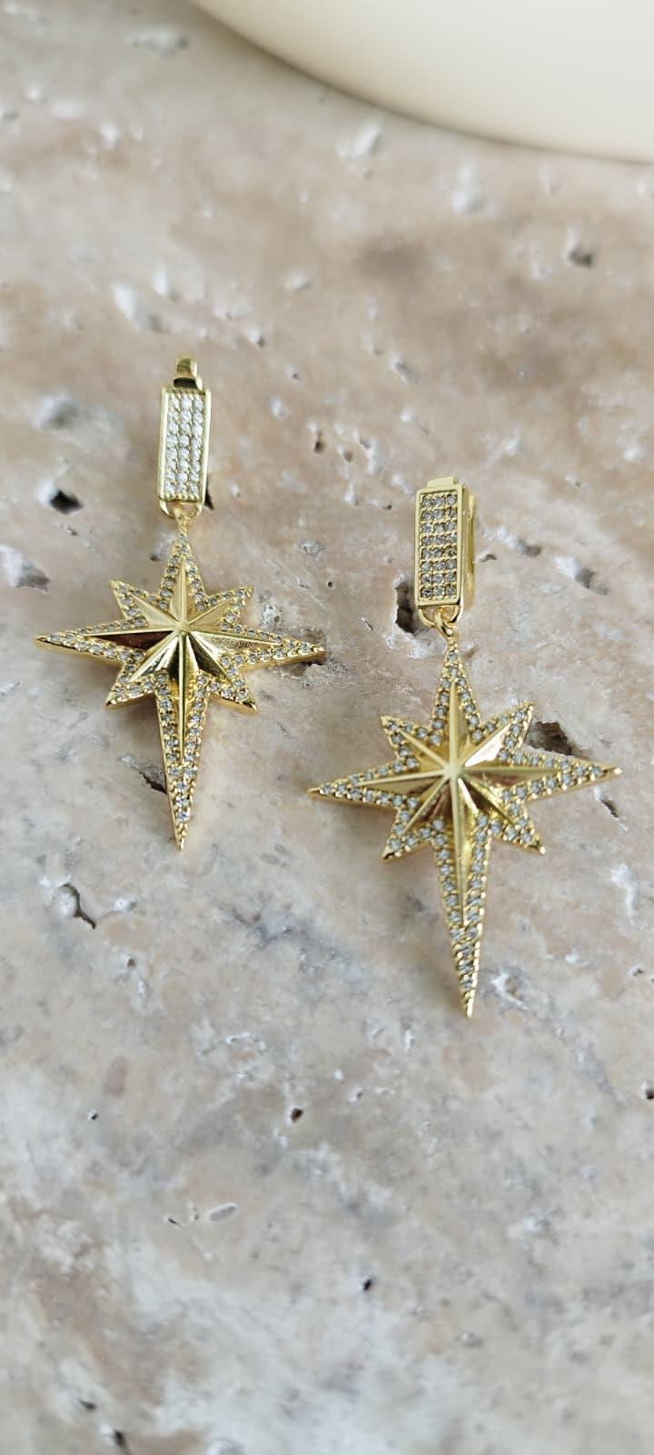 Ful Taş Detaylı Kuzey Yıldızı Küpe (ck-62)