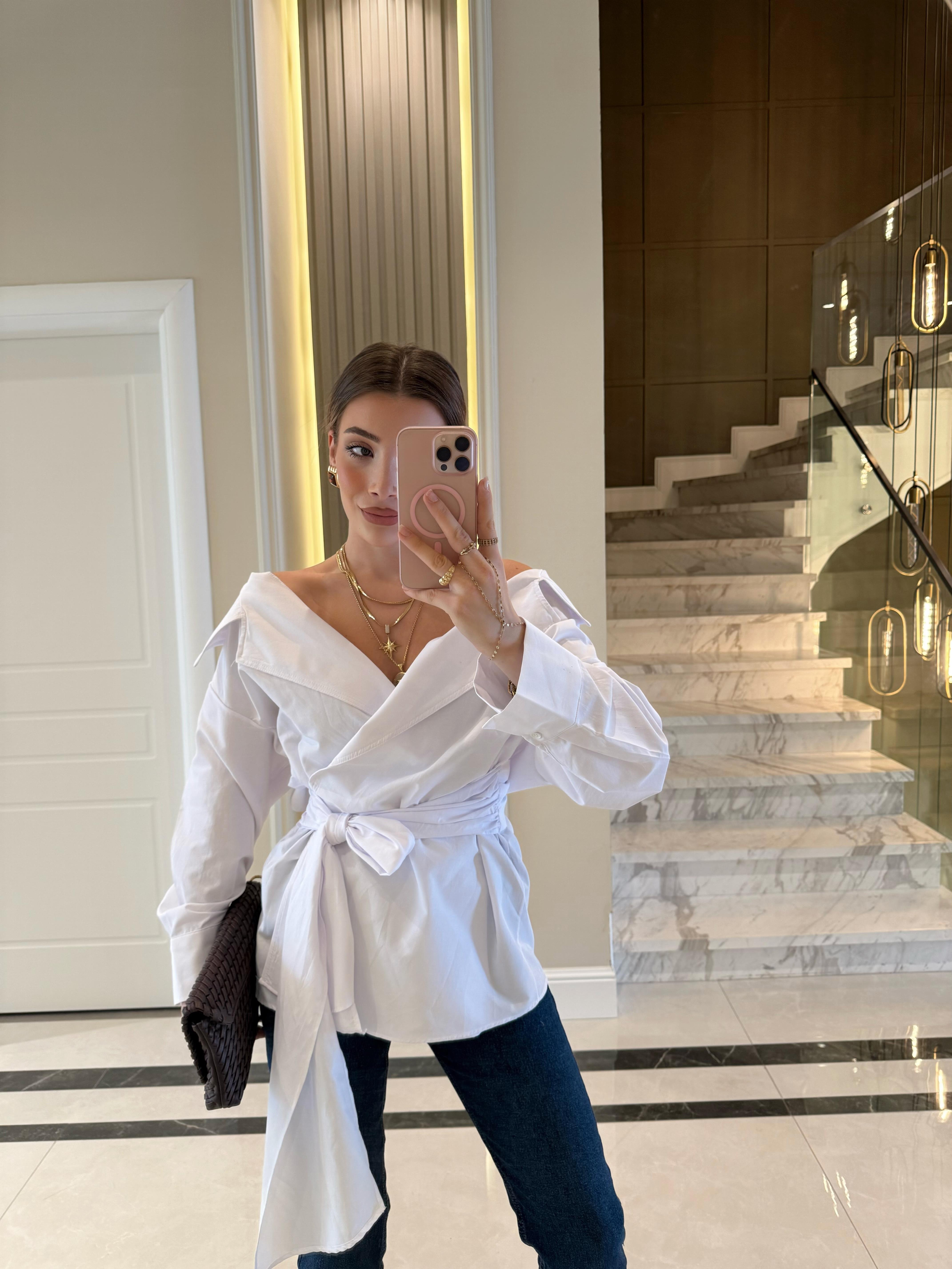 FW- Beyaz Önü Bağlamalı Poplin Gömlek