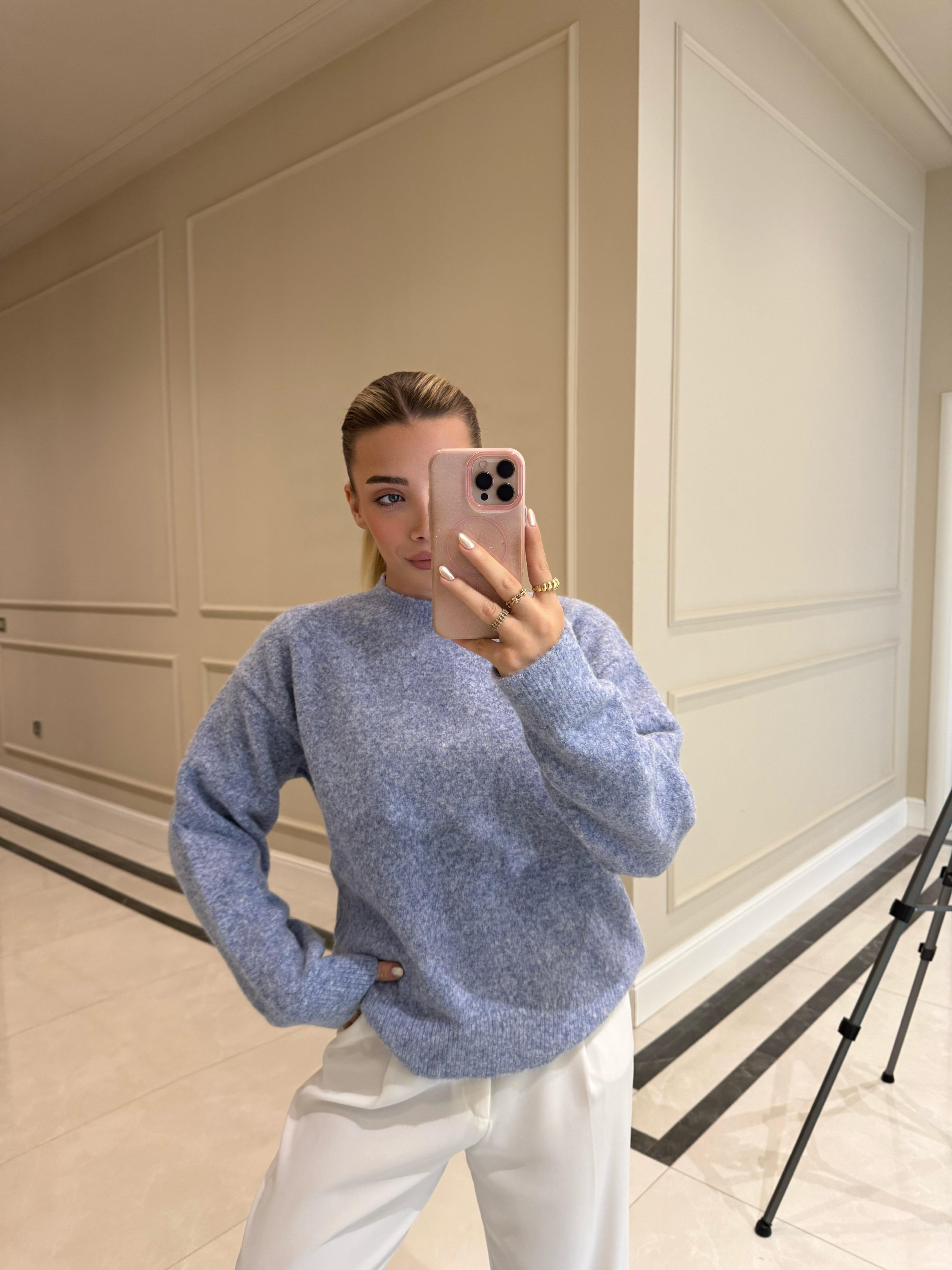 İndigo Melanj Bisiklet Yaka Yumuşak Dokulu Triko Kazak-10640