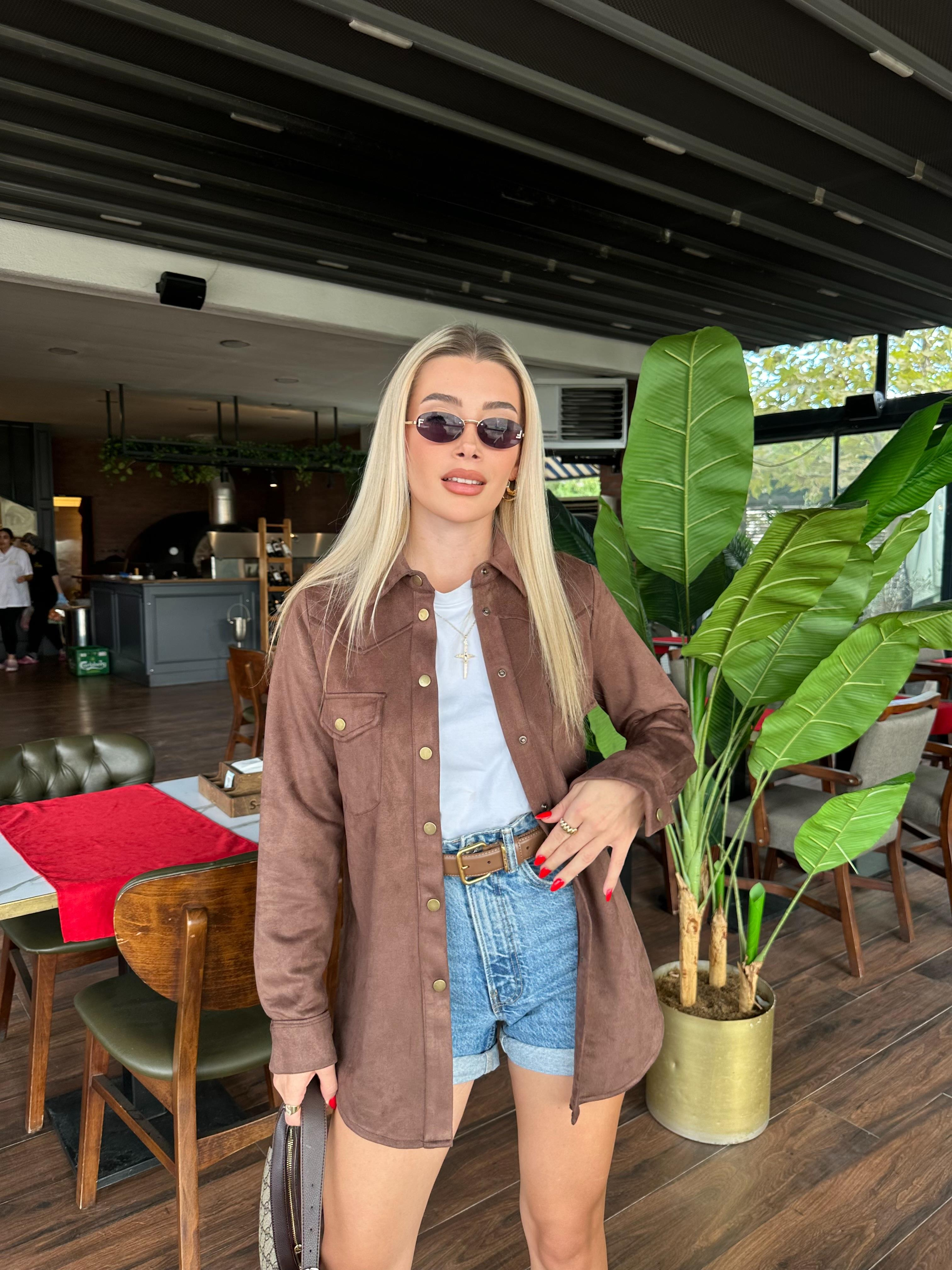 Kahve Süet Çıtçıtlı Gömlek Ceket