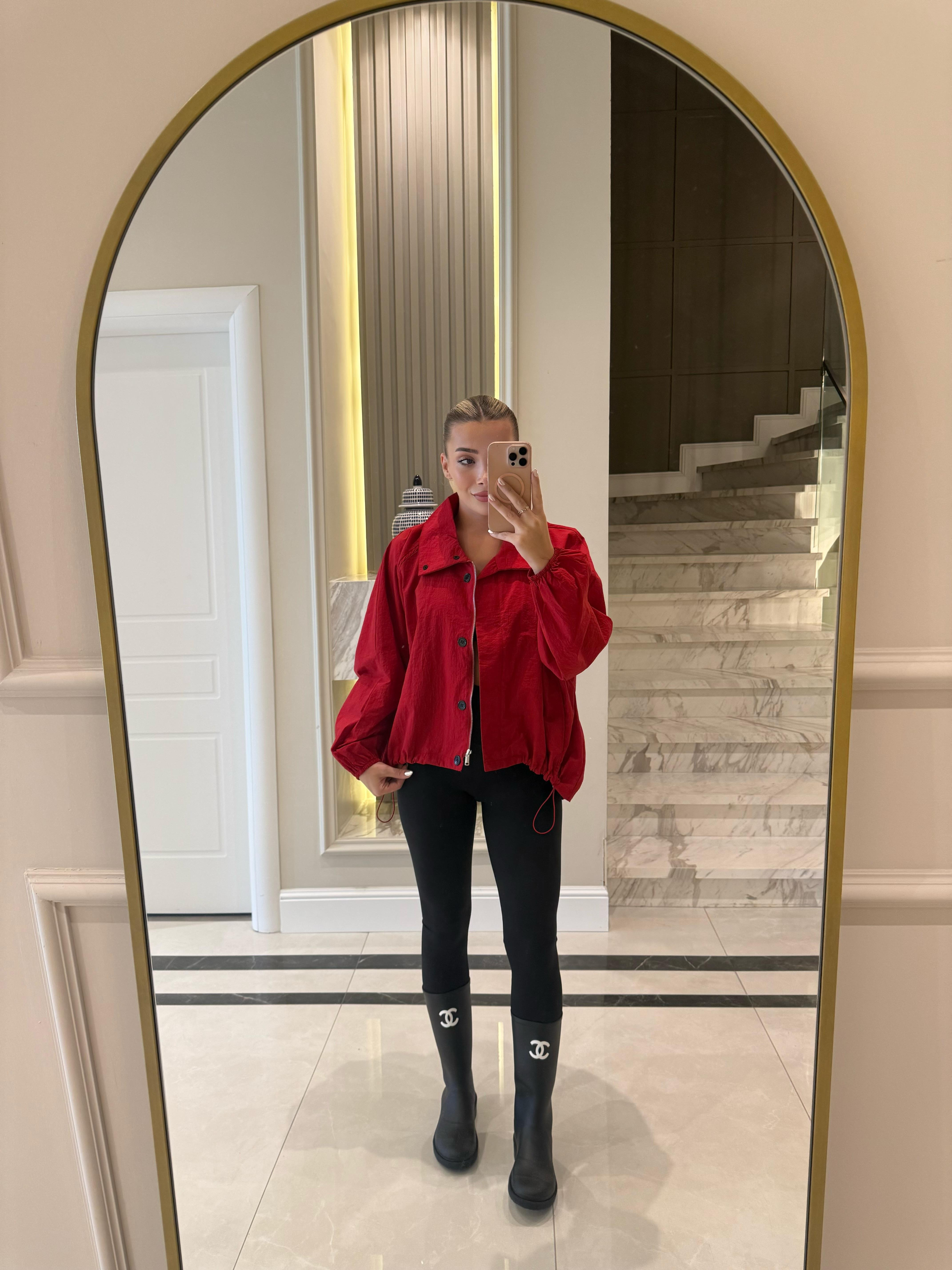 Kırmızı Paraşüt Kumaş Kısa Rüzgarlık