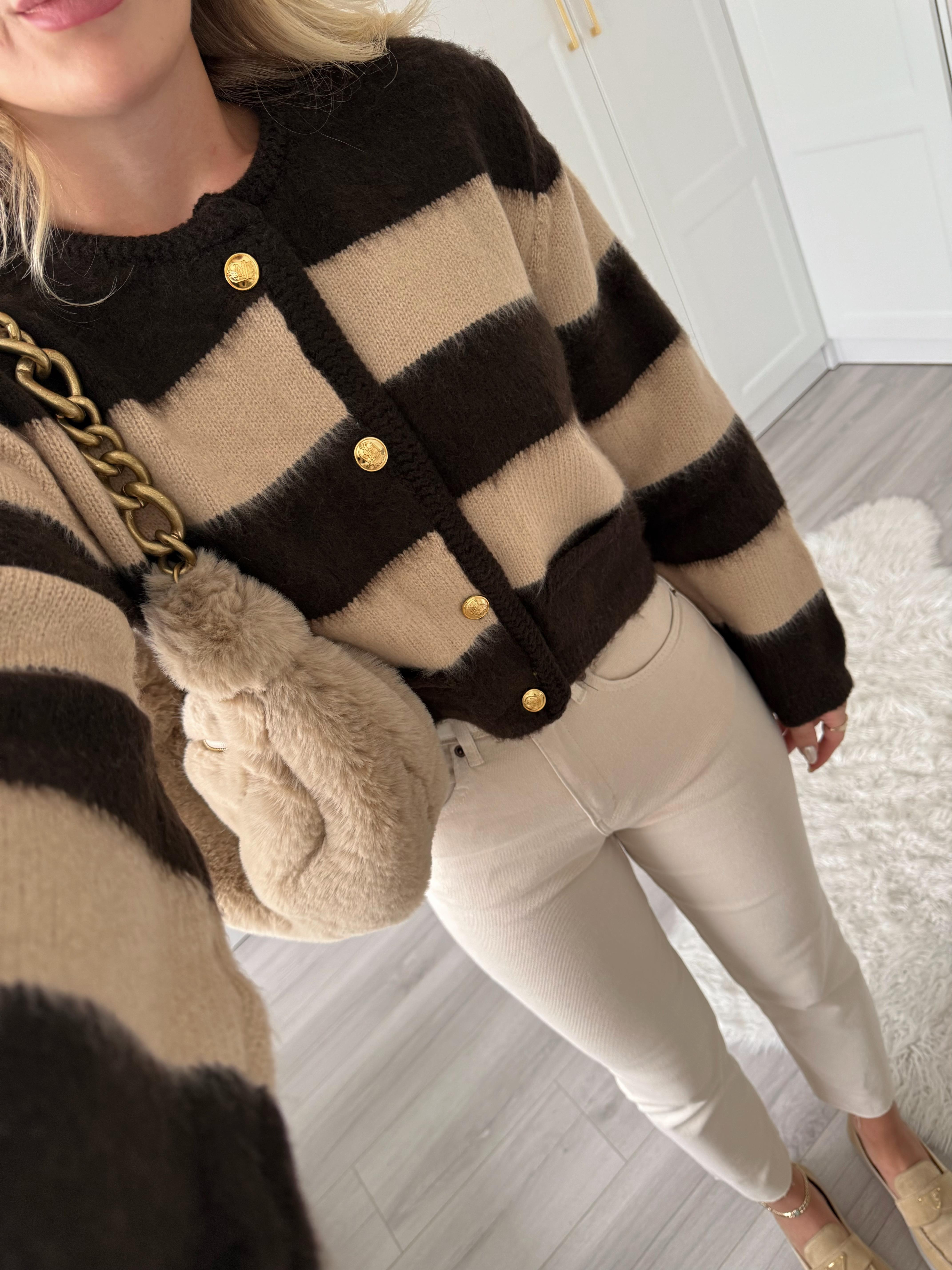 Koyu Kahve -Bej Şardonlu Çizgili Hırka -1041