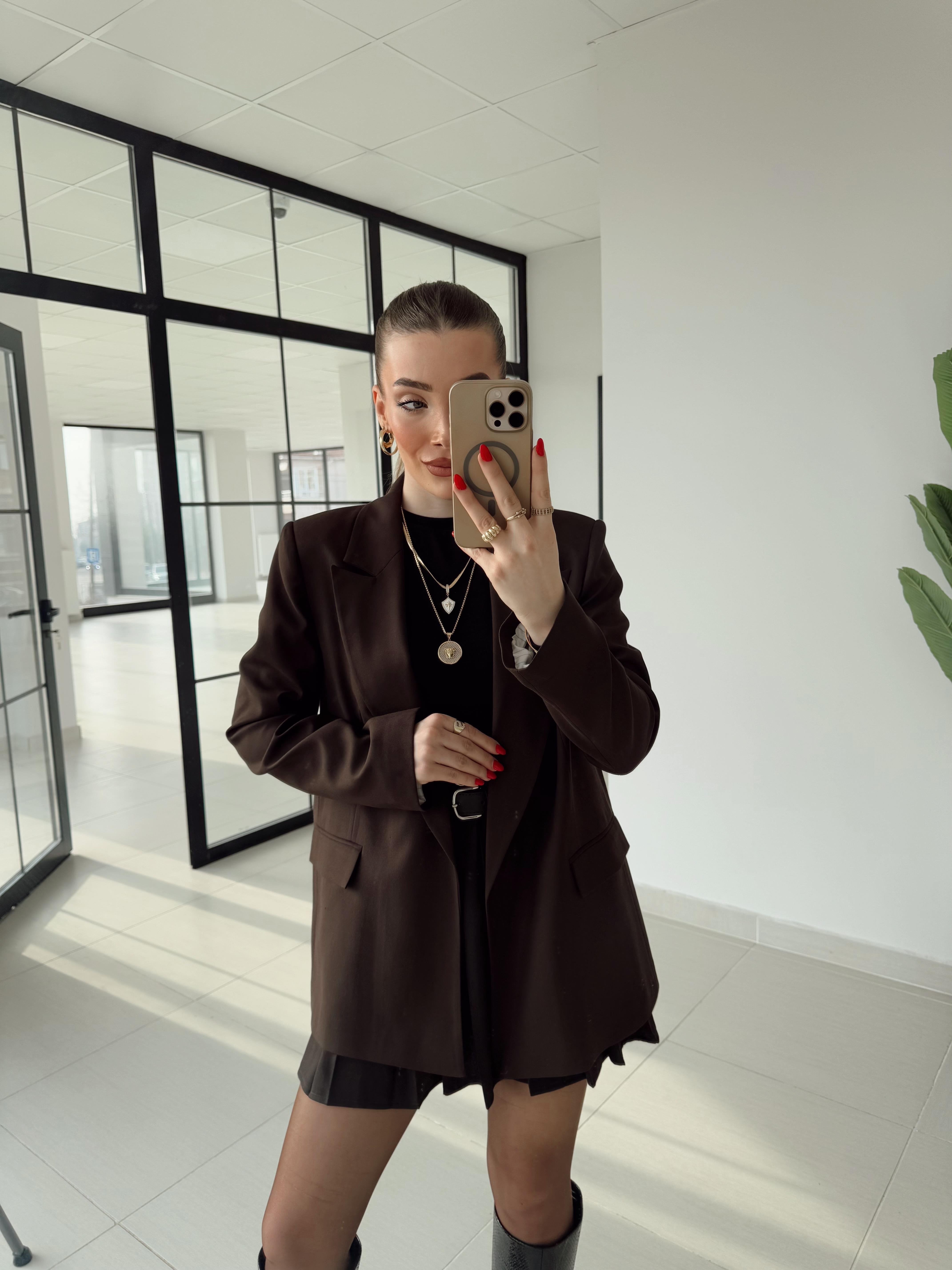 Koyu Kahve Çizgili Astarlı Poliviskon Ceket