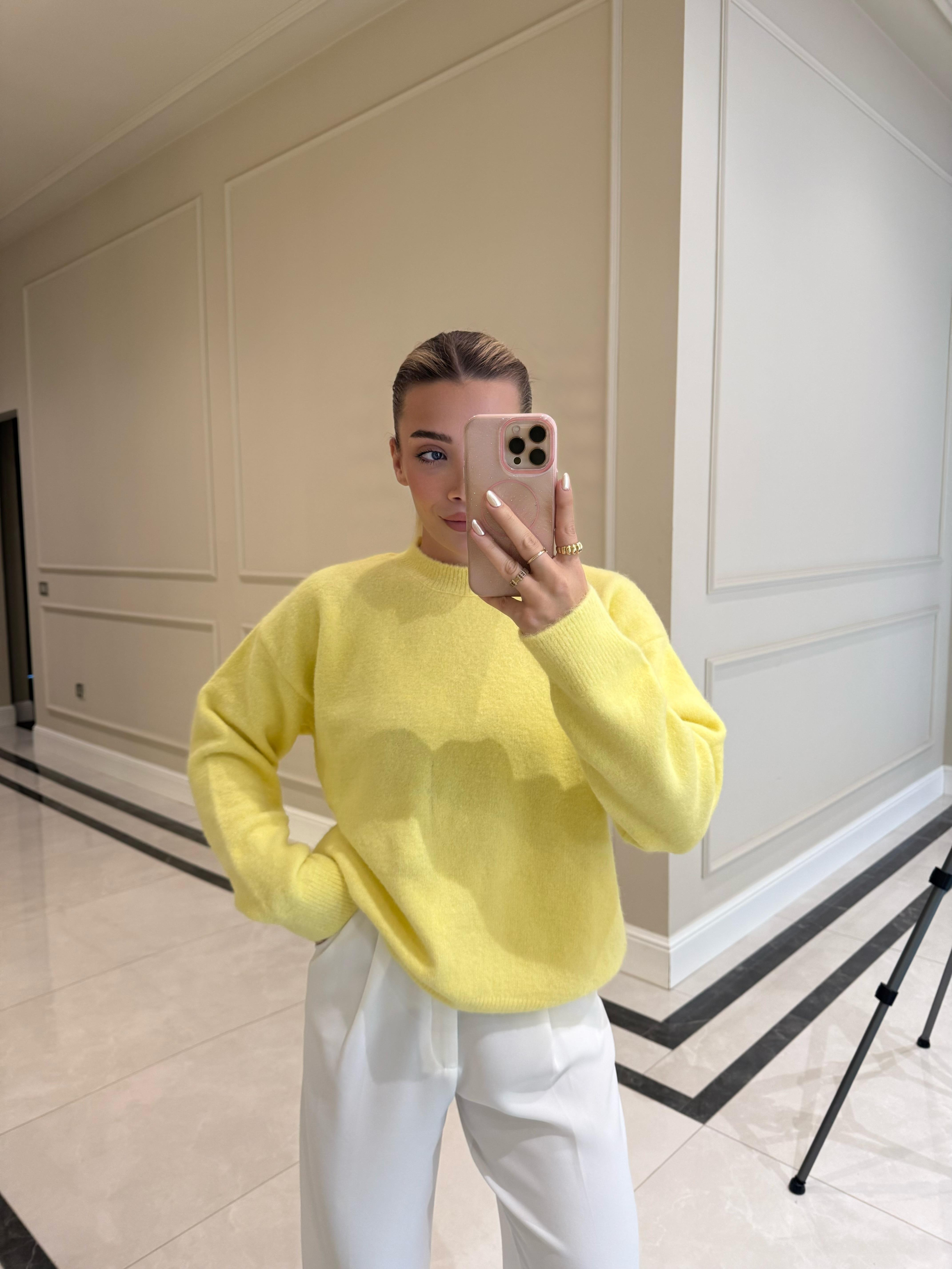 Koyu Sarı Bisiklet Yaka Yumuşak Dokulu Triko Kazak-10640