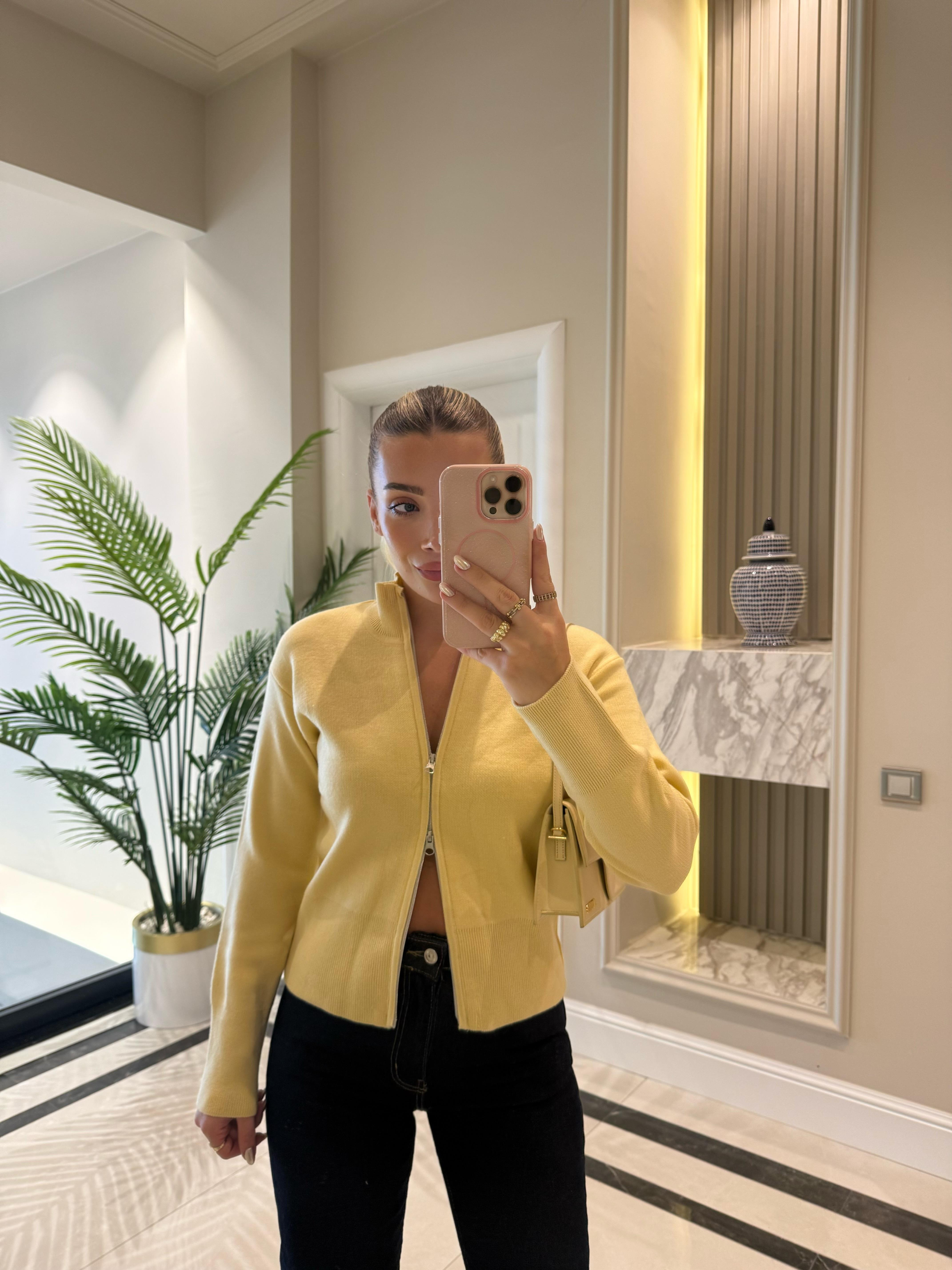 Sarı Fermuarlı Dik Yakalı Hırka-1042