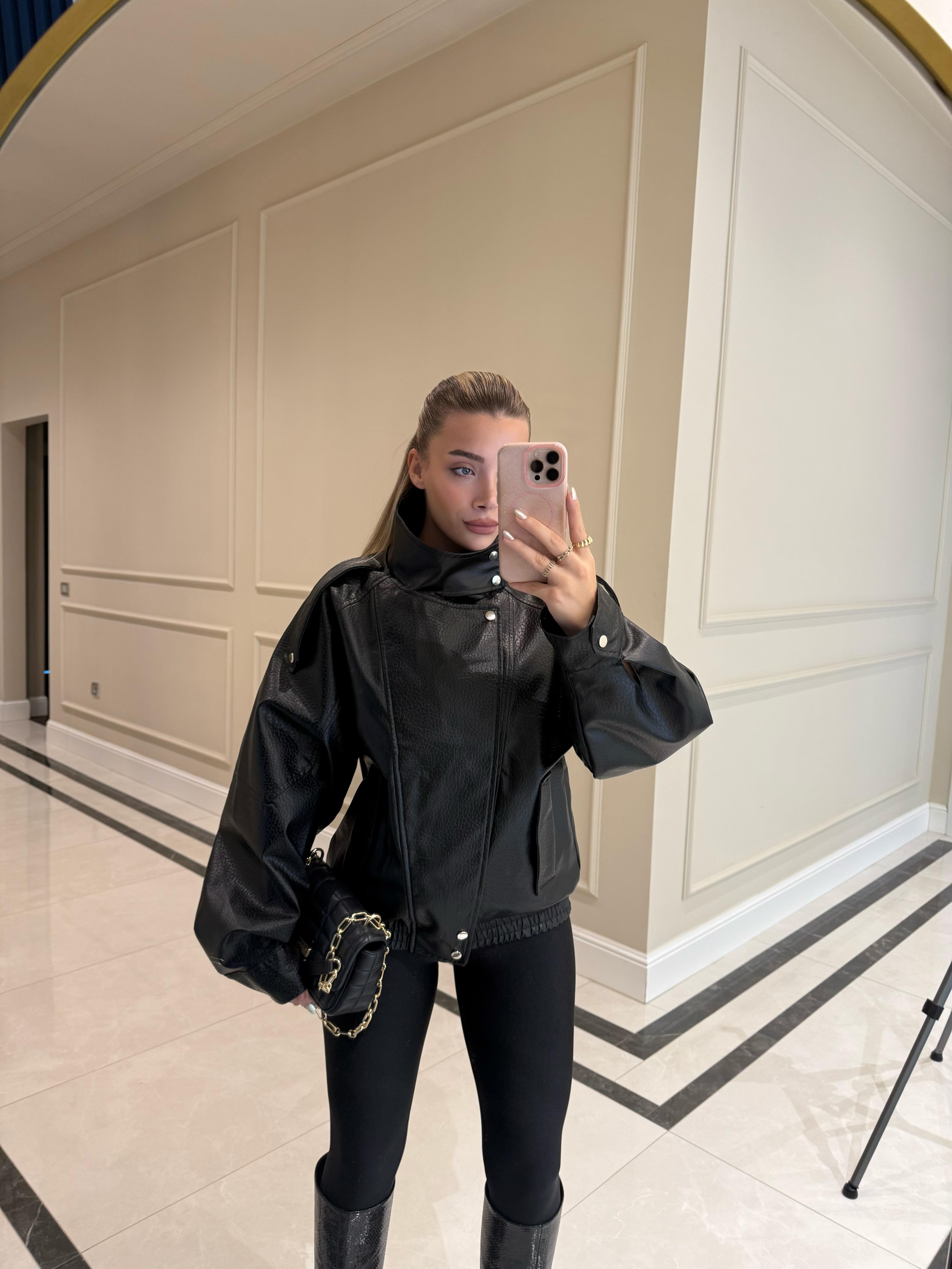 Siyah Dik Yakalı Deri Ceket (ck-008)