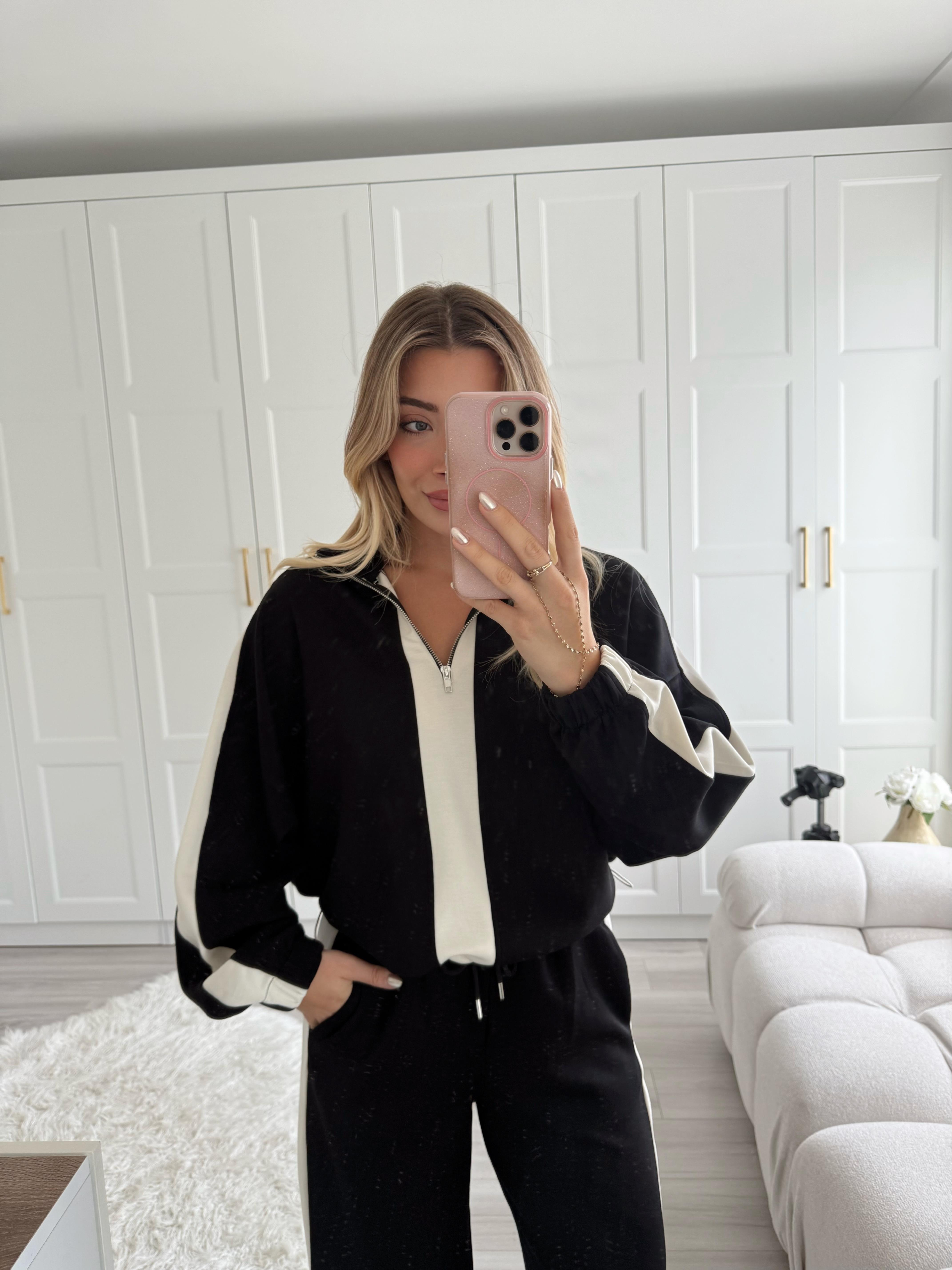 Siyah-Bej Yanları Şerit Detaylı İkili Takım- 35704
