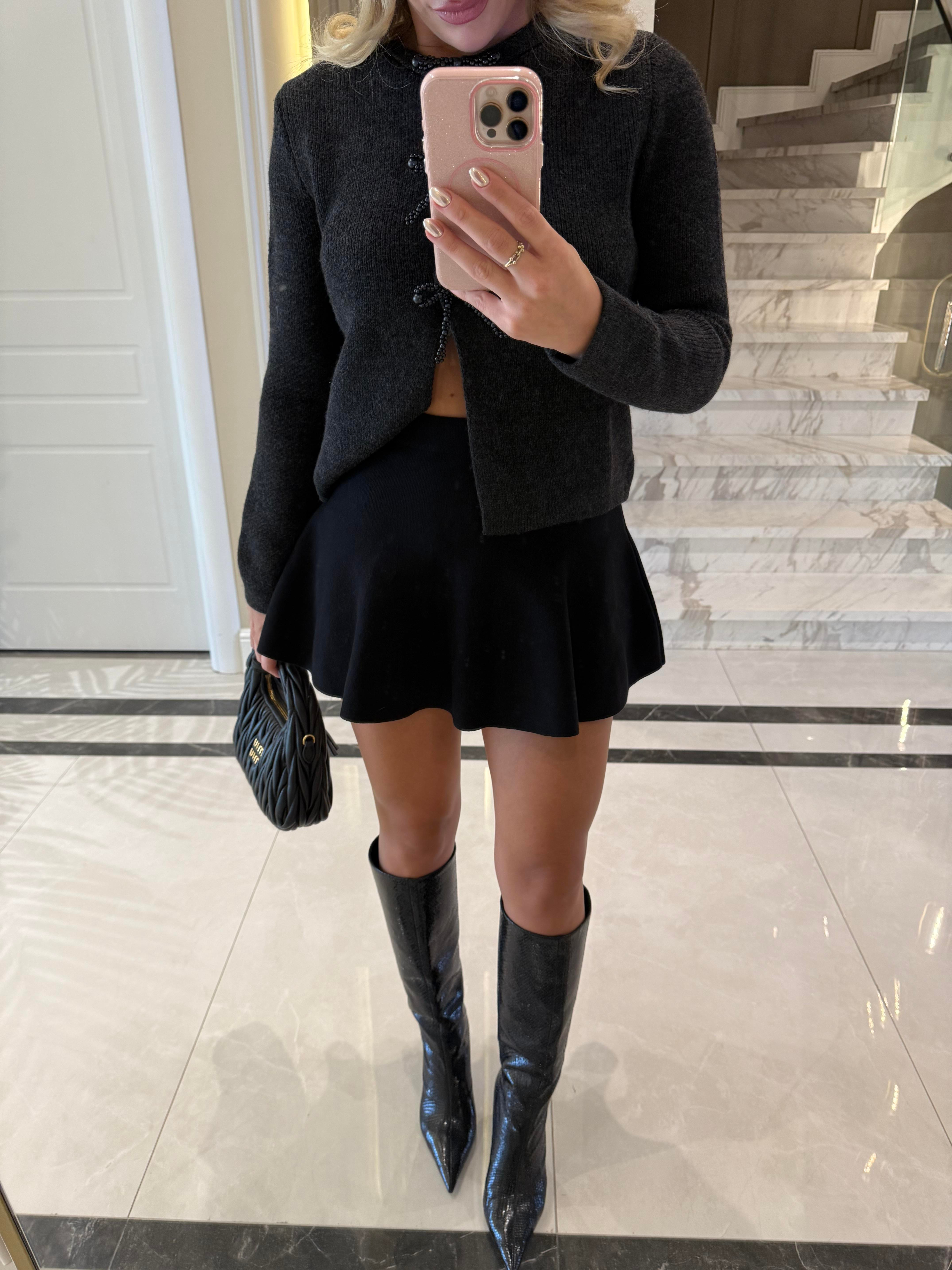 Siyah Beli Lastikl Volanlı Triko Etek -80120
