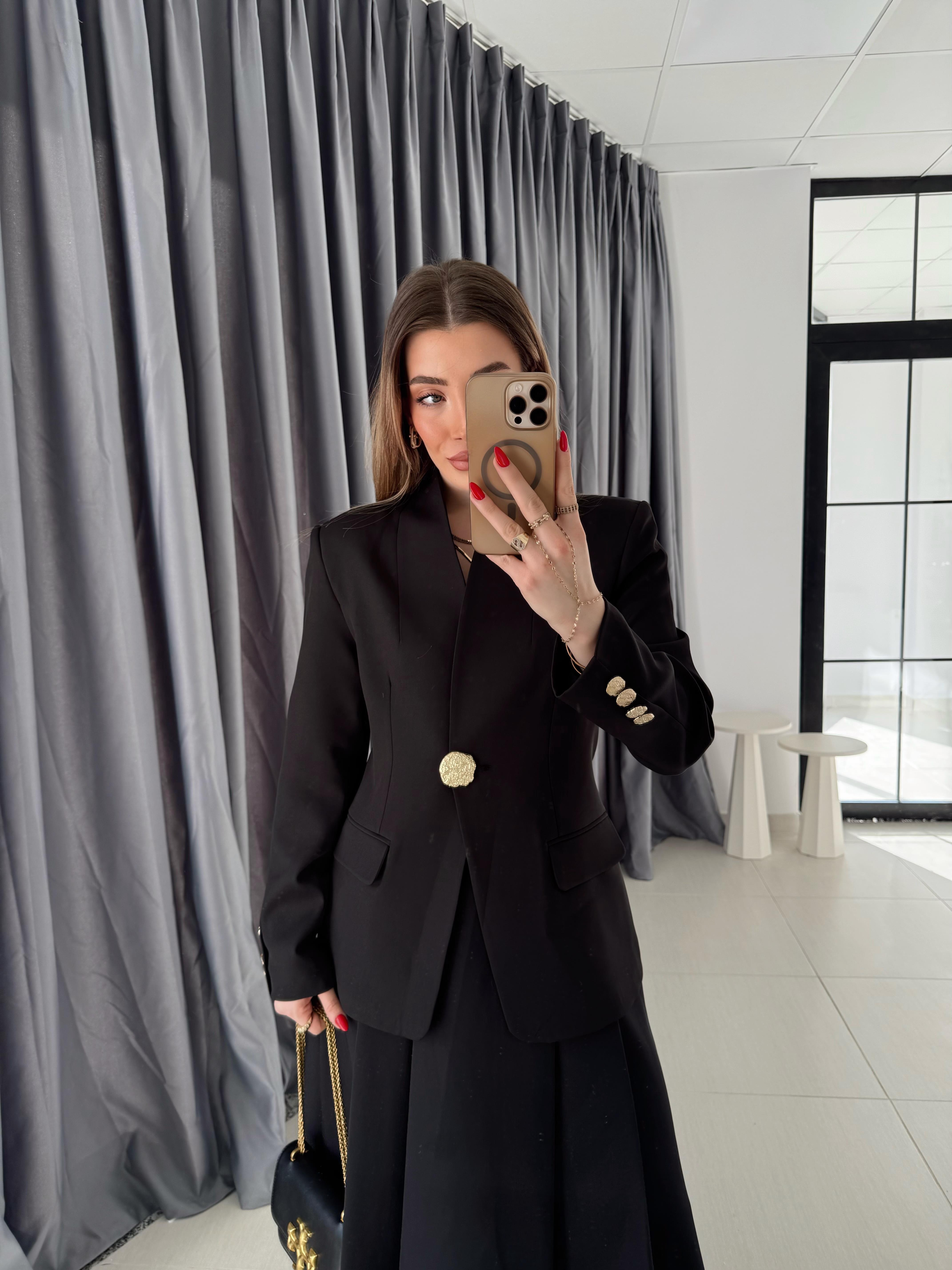 Siyah Gold Düğmeli Baden Blazer Ceket-501171