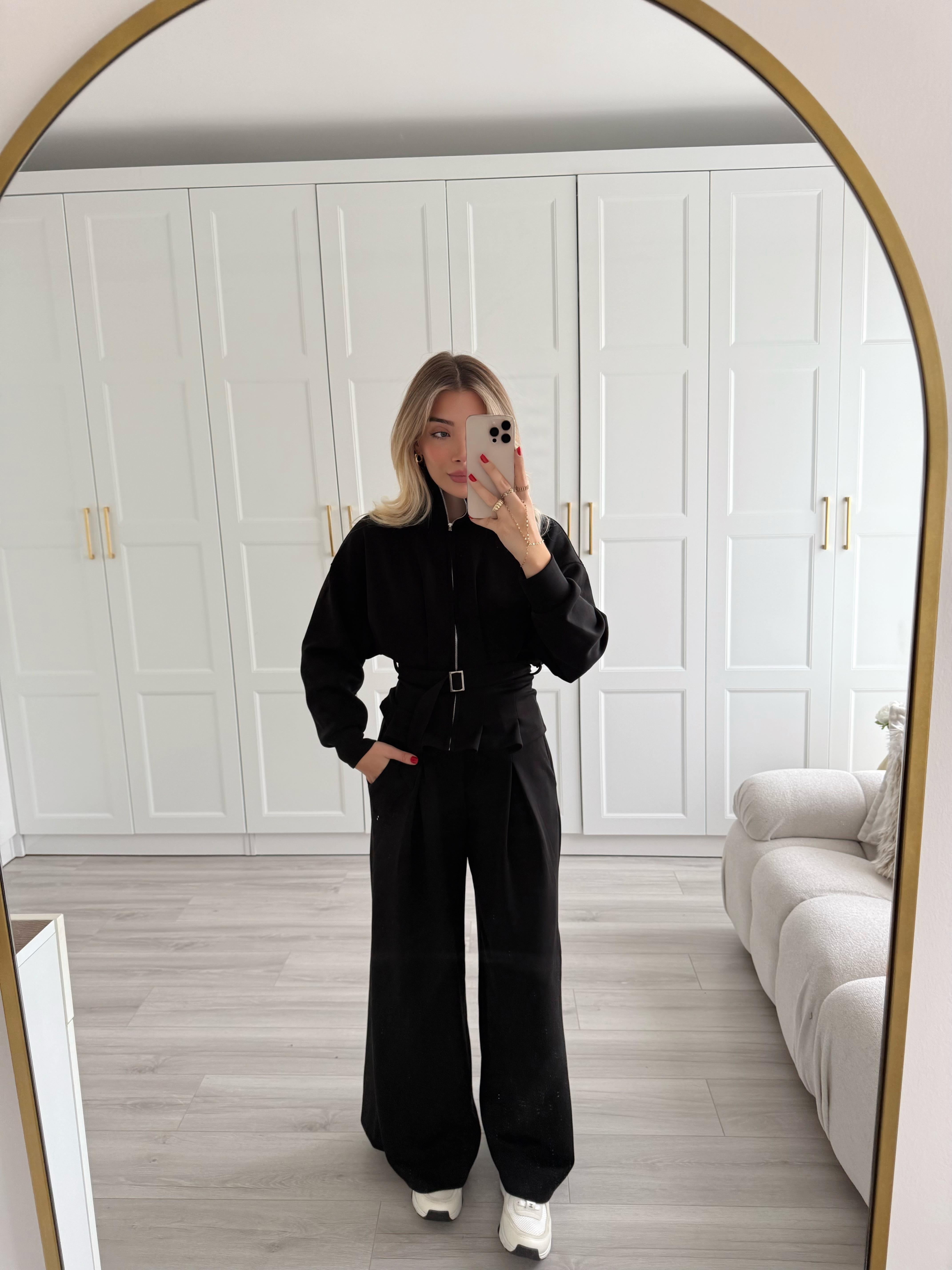 Siyah Kemerli Modal Kumaş İkili Takım