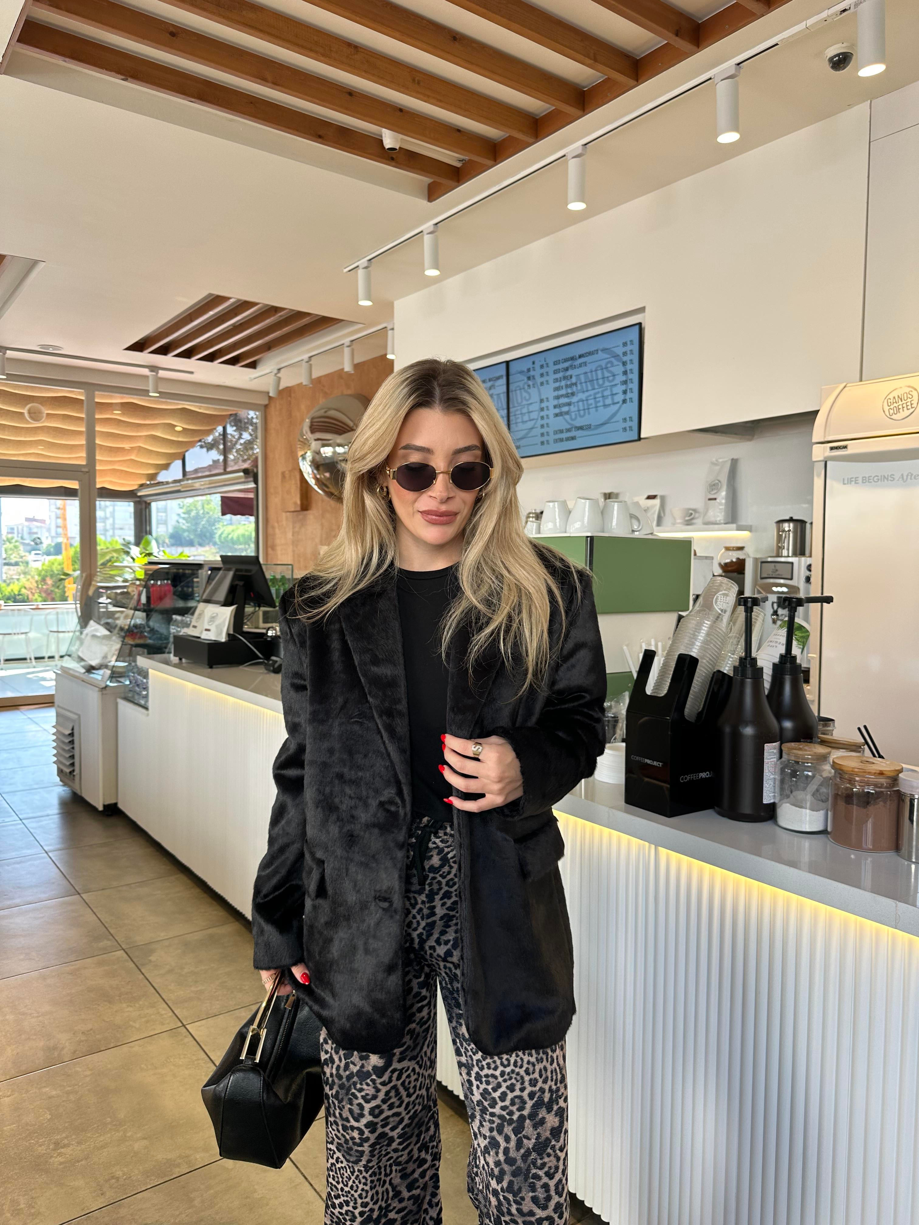 Siyah Kürk Dokulu Blazer Ceket