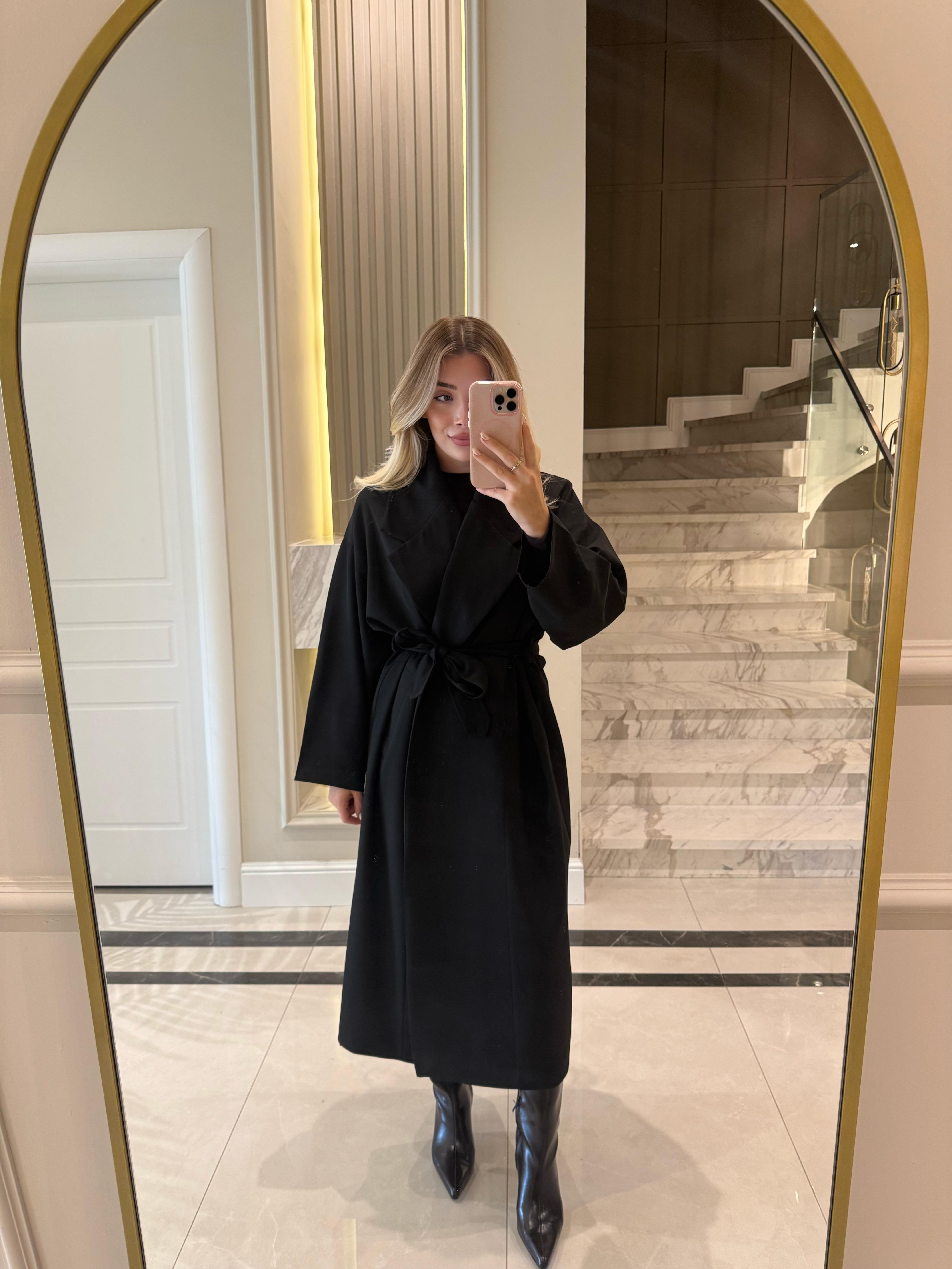 Siyah Poliviskon Uzun Trenç-9617