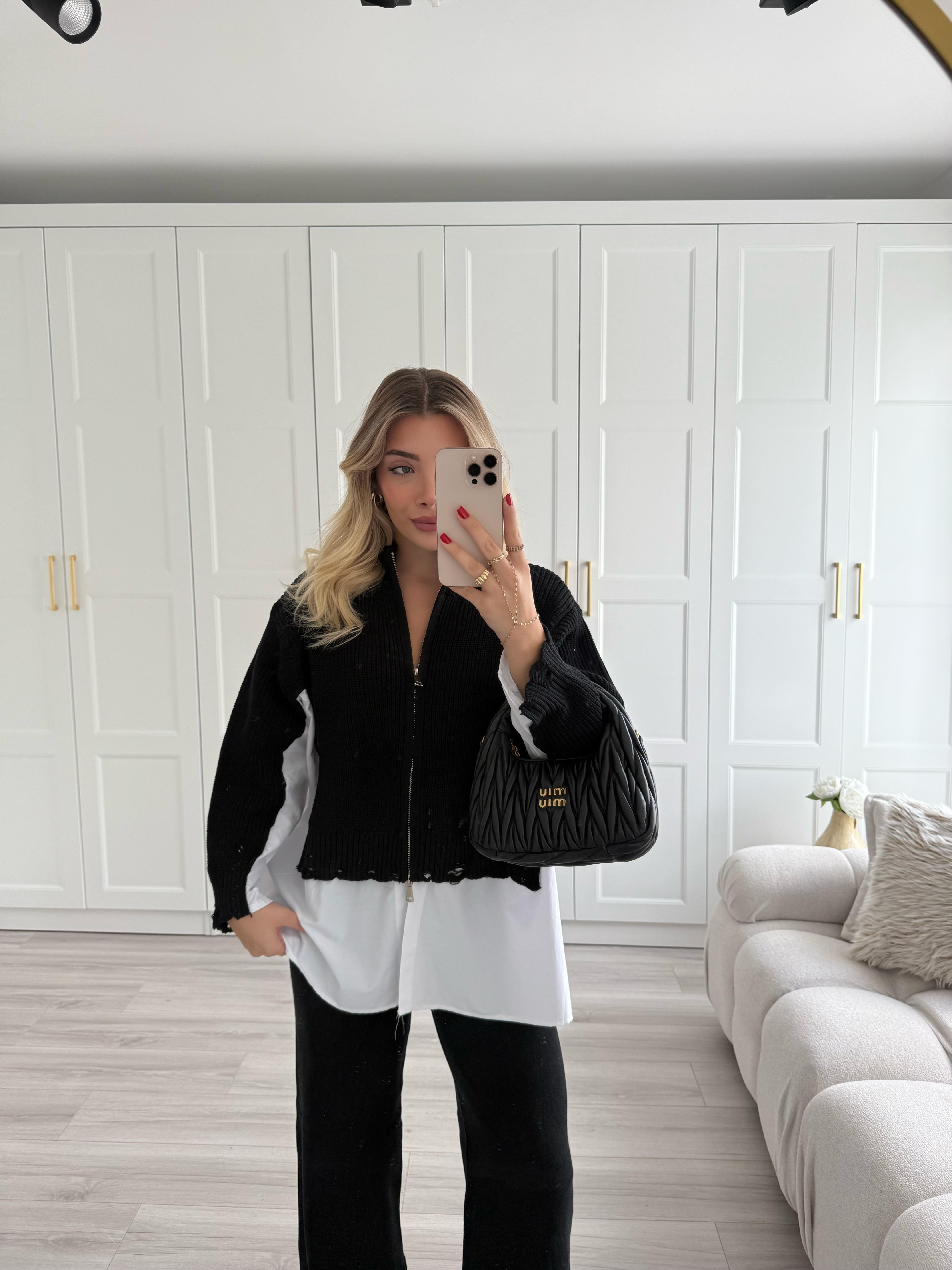 Siyah Poplin Gömlek Detaylı Triko Takım