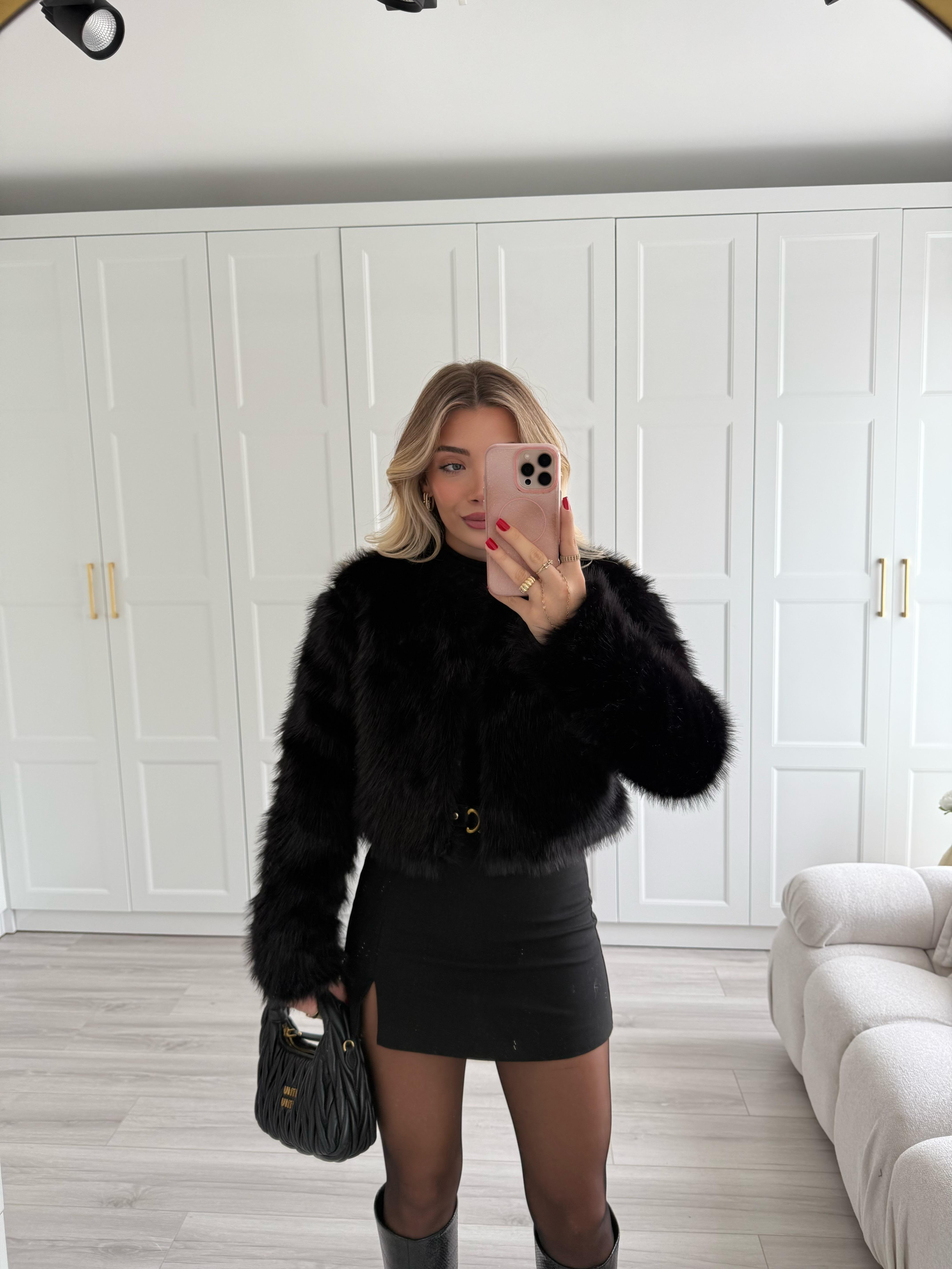 Siyah Sıfır Yaka Kısa Kürk