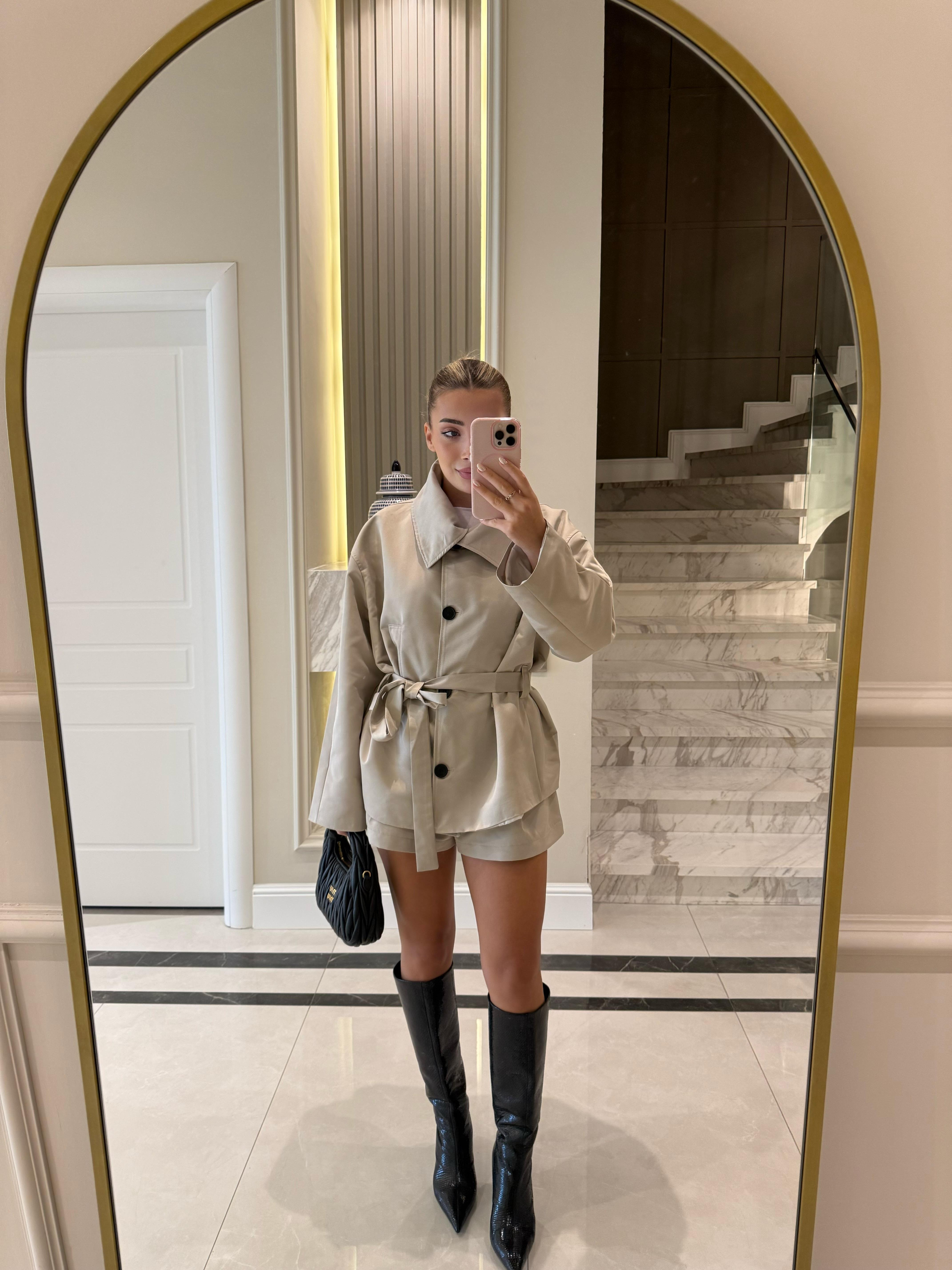 Taş Renk Trençkot-Şort İkili Takım (ck-7735)