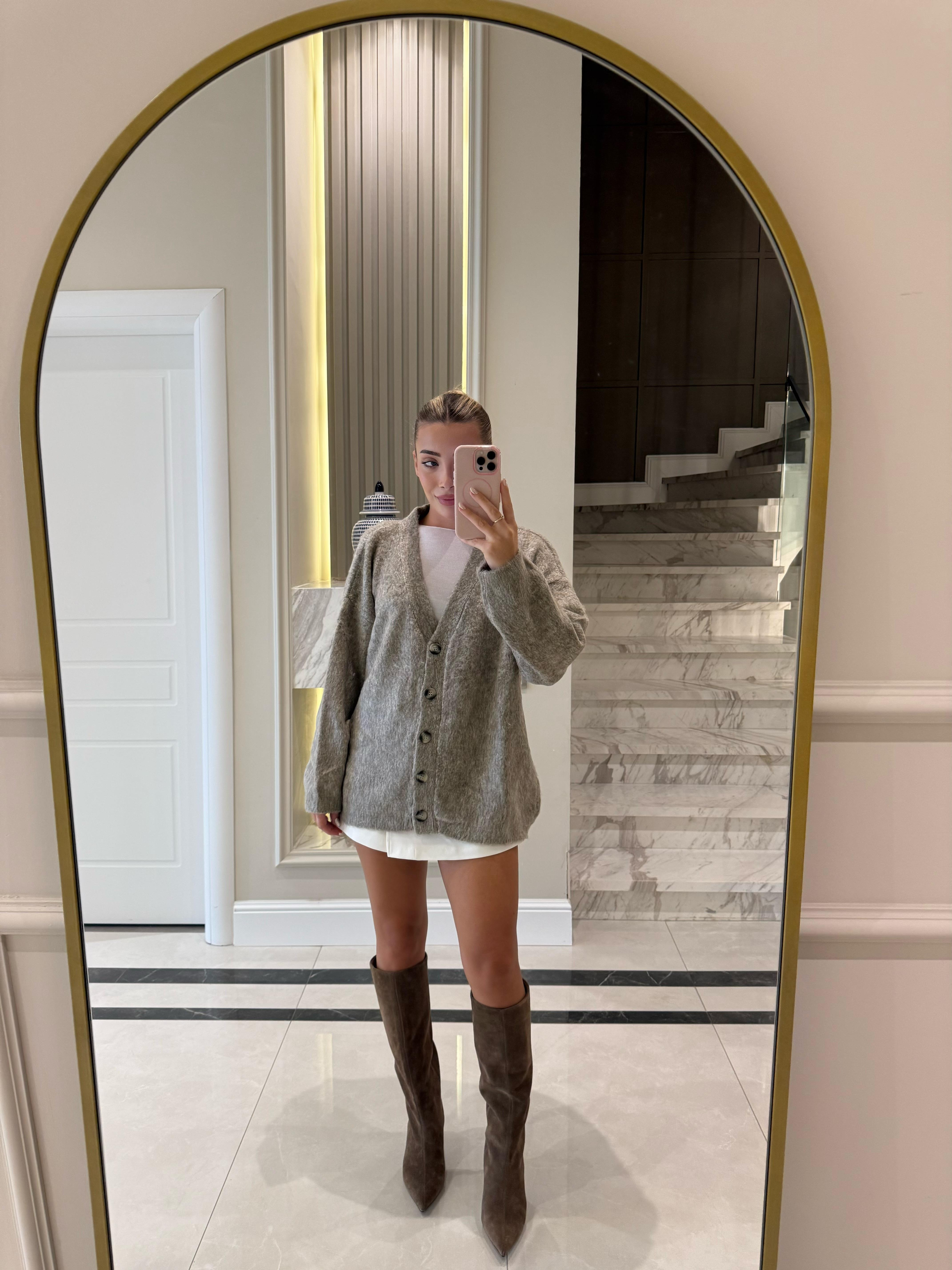 Vizon V Yaka Şardonlu Düğmeli Triko Hırka
